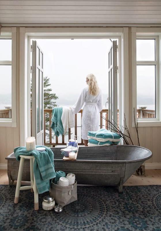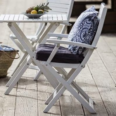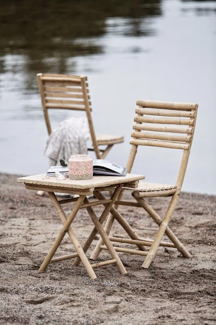 Portør cafègruppe, sammenleggbart, bord 66x66xH74 cm 1195,-, stol B54xD58xH94 cm 995,-. Sivkurv med lærhåndtak fra Tine K 349,-. Oliver fat i sink 99,-. Boksputetrekk i mørk blå fra Lama, 45x45 cm 249,-. Beaty Piece putetrekk, 50x50 cm 129,-.